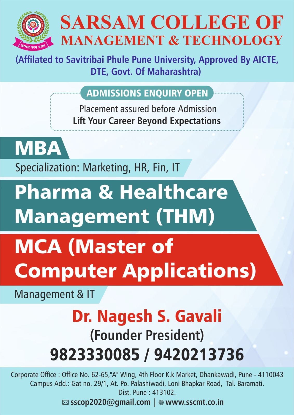 Sudarshan Educational Foundation is established in the year 2007. It has been started by Mr. N. S. Gavali to cater the need of yong generation of higher education with more focus creating entrepreneurs. Keeping this as the yardstick, the educative and informative ambiance of Sarsam College Of Pharmacy aims at creating opportunities for young professionals. It provides and triggers the scientific minds to be abrust with the latest happenings in Science and Technology about Pharmacy and beyond, about all the developments that can change the face of the world, “Pharmaceuticals”